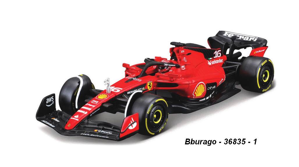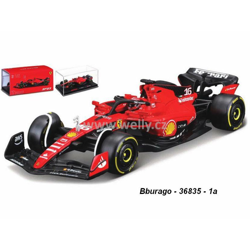 Parametry produktu Bburago 1:43 Ferrari SF-23 No.16 Ch. LeClerc 2023 - code Bburago 36835 L, helmet
