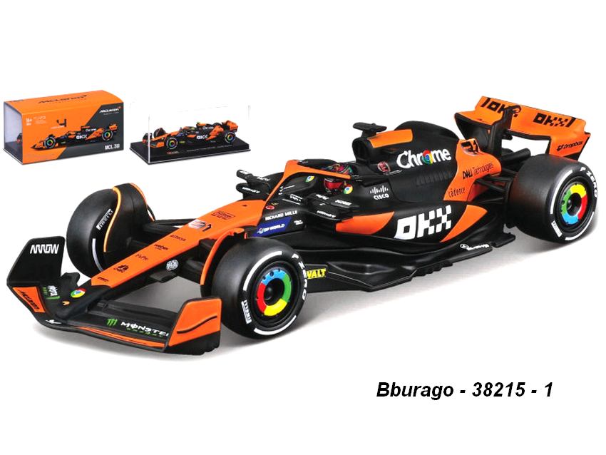Kovové modely aut, měřítko 1:43 Bburago McLaren MCL 38 No.81 Oscar Piastri 2024 with helmet - code Bburago 18-38215 P. Formula F1. Nevhodné pro děti do 14 let.