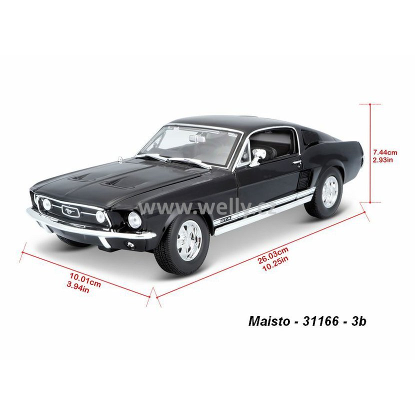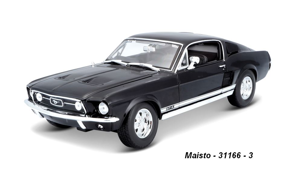 Parametry produktu Maisto 1:18 Ford 1967 Mustang GTA Fastback (black) - code Maisto 31166, modely aut