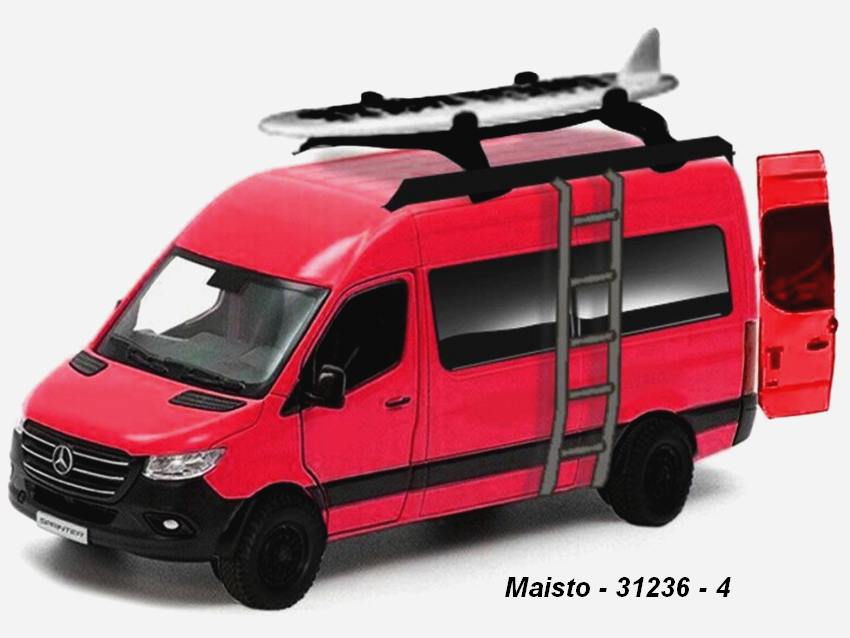 Parametry produktu Maisto 4,5" Mercedes Benz Sprinter - weekenders with surf (red) - code Maisto 21236