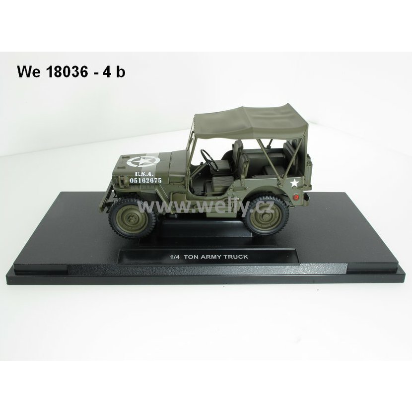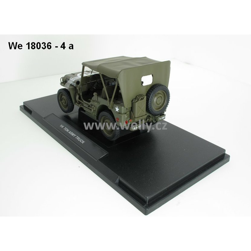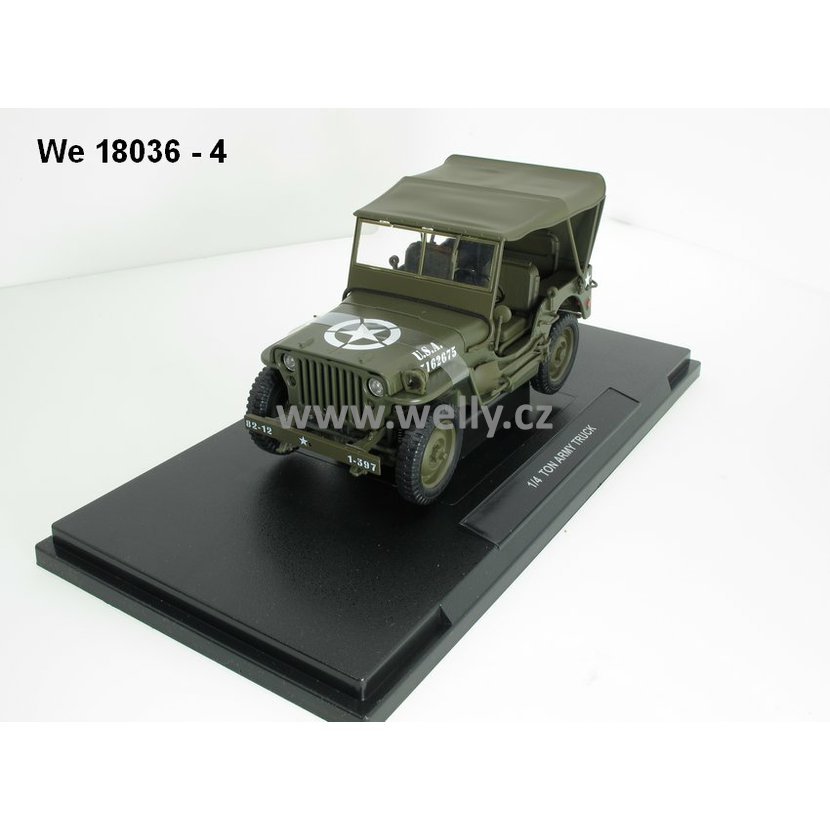 Kovové modely aut, měřítko 1:18 Welly Jeep Willys 1942 US Army 1/4 Ton version (matt green) - code Welly 18055H. Nevhodné pro děti do 3 let. MOQ = minimální objednací množství do výroby, běžně nedostupné.