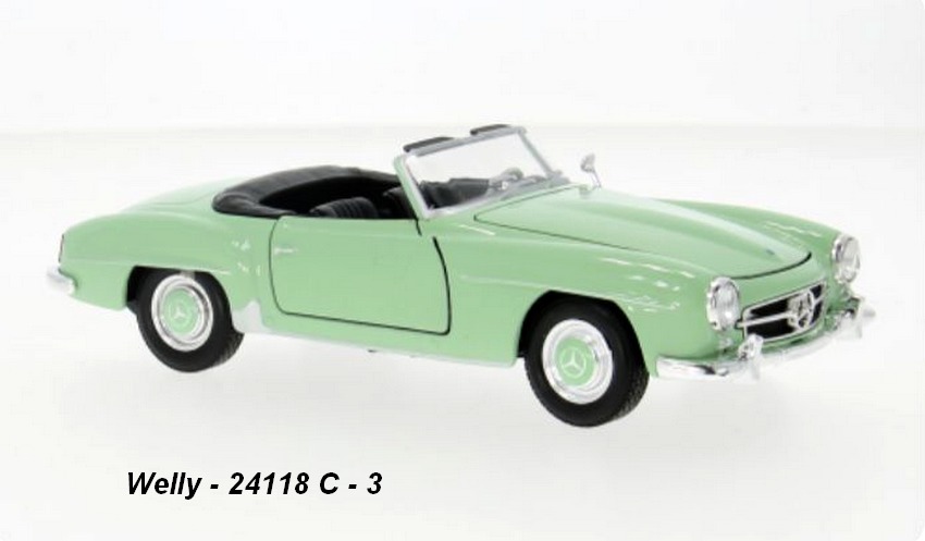 Parametry produktu .Welly 1:24 Merdedes-Benz 190 SL 1955 convertible (green) - code Welly 24118C, modely aut
