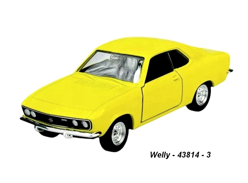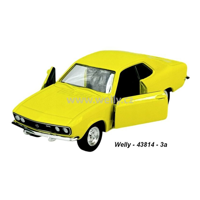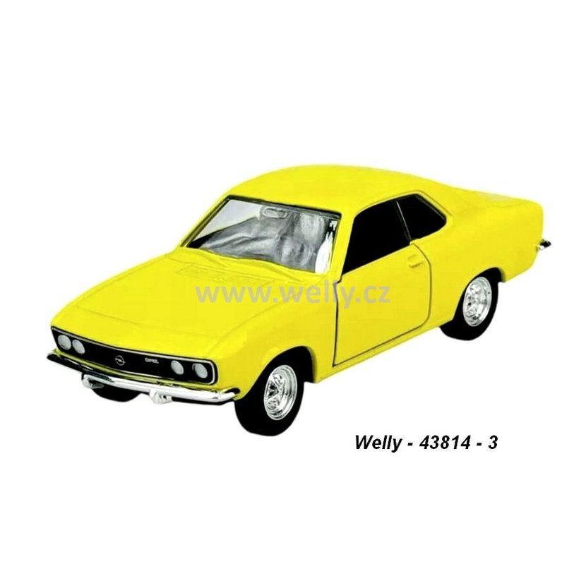 Kovové modely aut, měřítko 4,5" (1:34-39) - modelová hračka Opel Manta A 1970 (yellow) - code Welly 43814. Nekatalogová barva. Nevhodné pro děti do 3 let.